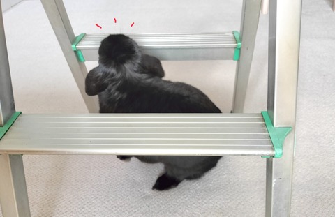 ラグの端を噛むので 板を貼り付けました そっぽ向いて ふてくされちゃった 何を・・・